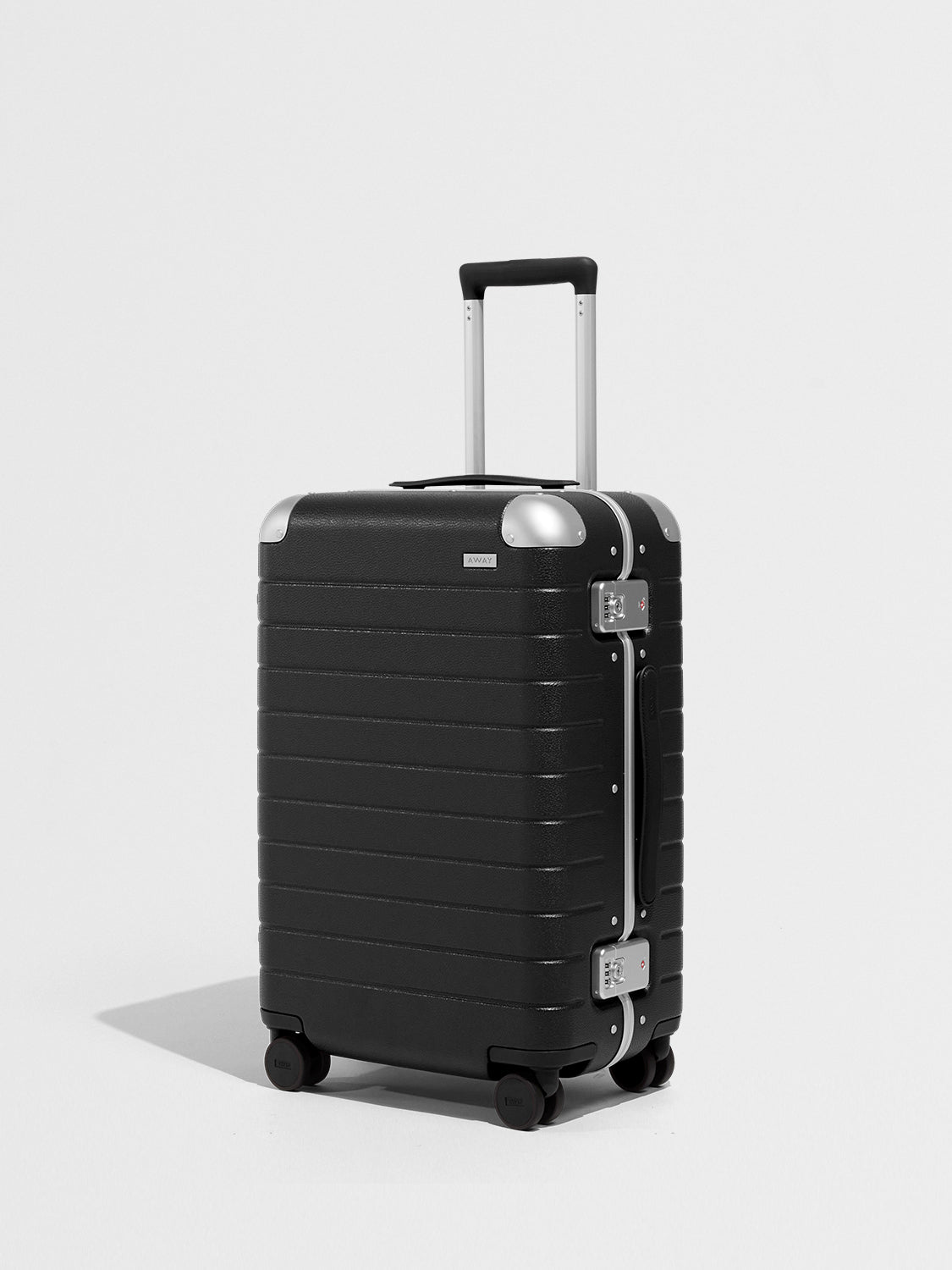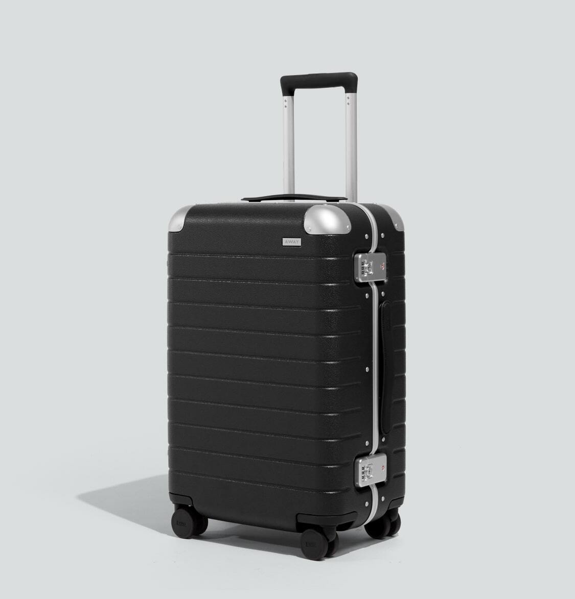 Hybrid of aluminum frame and leather-textured shell to elevate every journey |