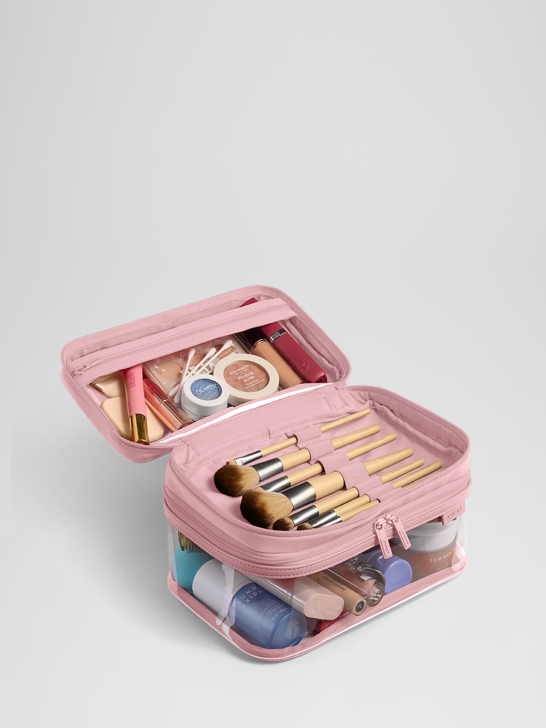 Organize your essentials with water-resistant, spill-proof toiletry bags—easy to pack, easy to access.