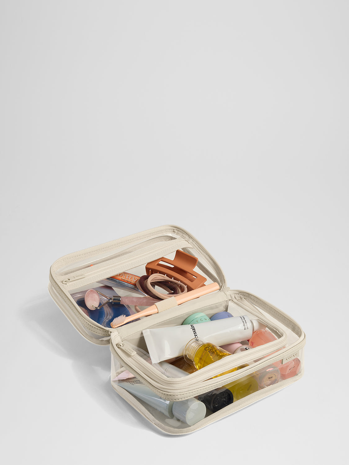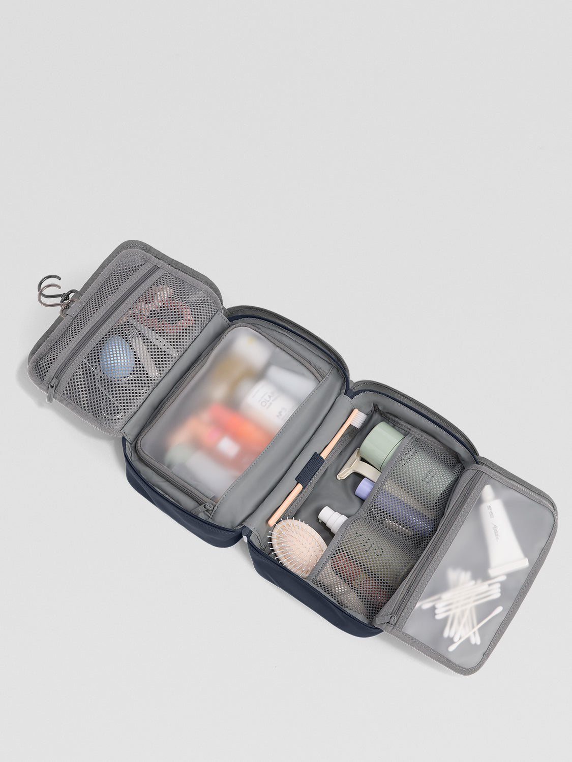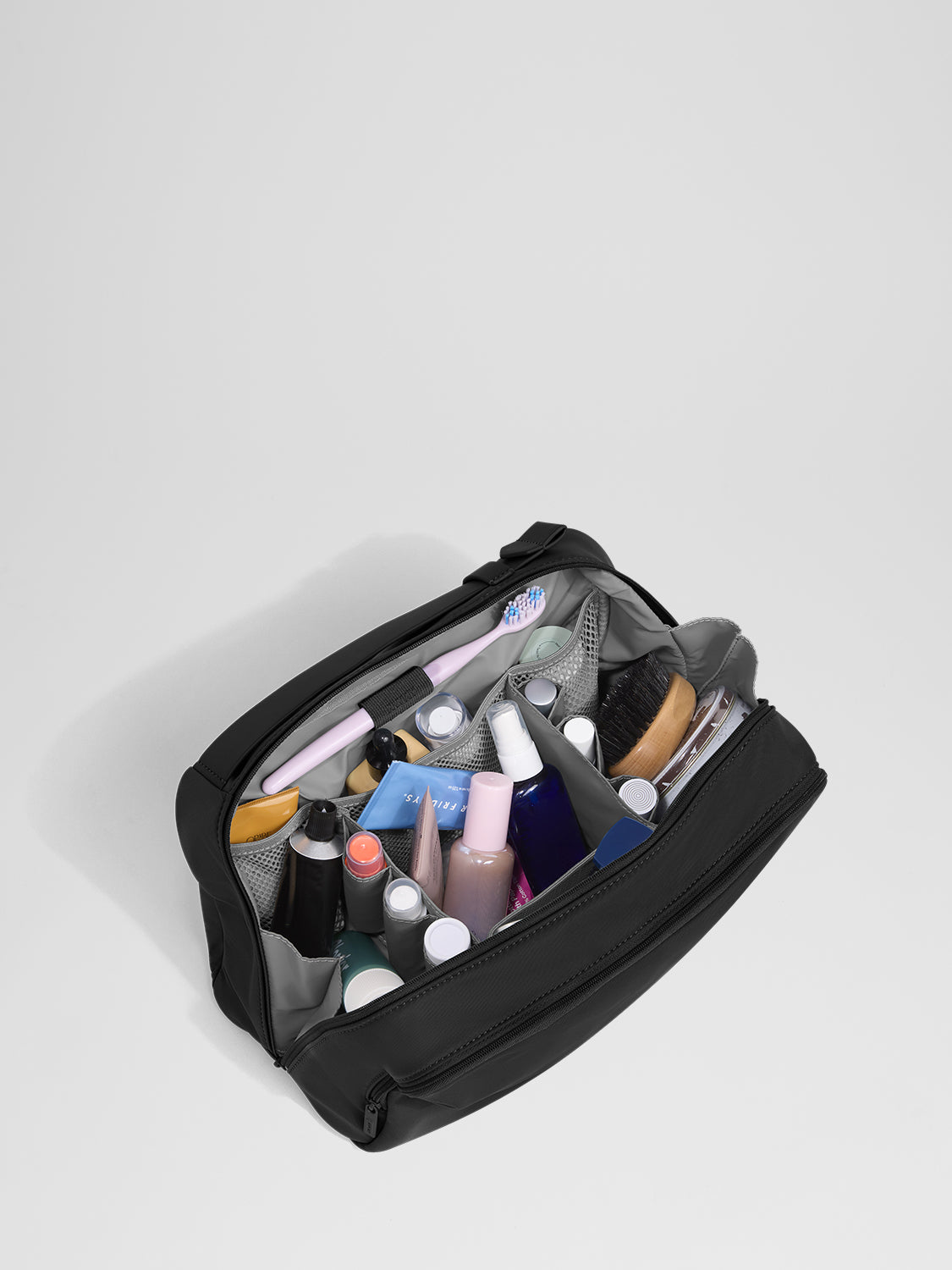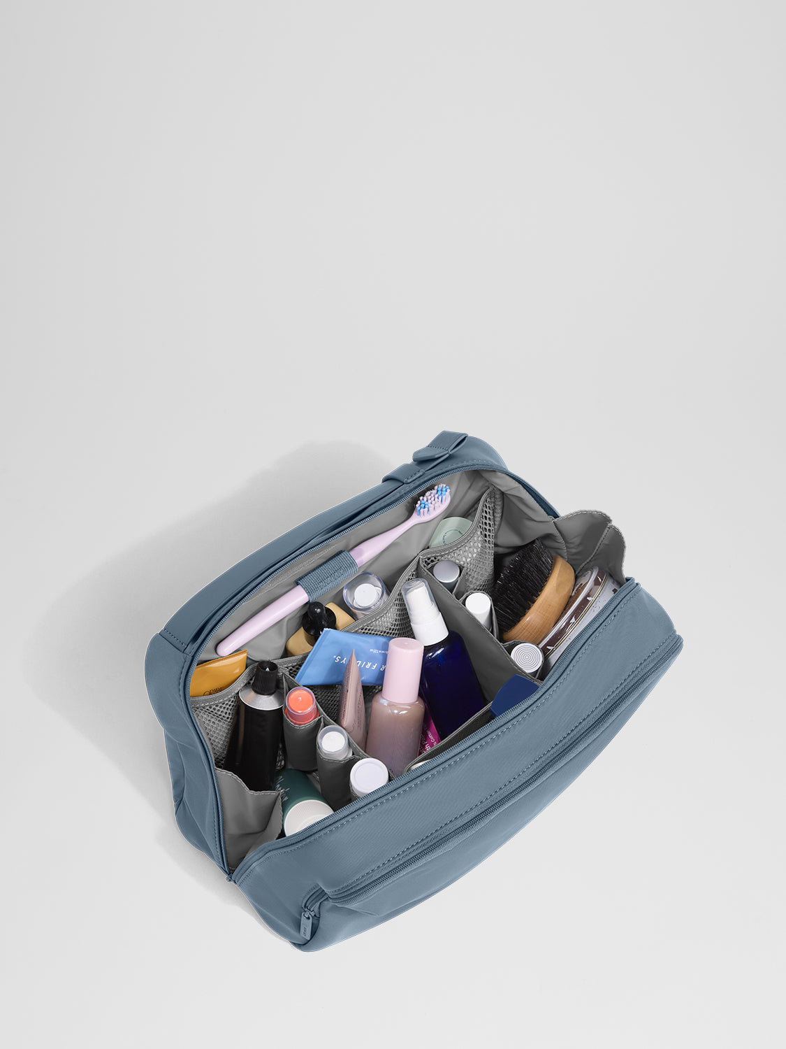 A toiletry bag is a small, usually compartmentalized pouch designed specifically to hold hygiene items like your toothbrush, shampoo, and skincare products while traveling.