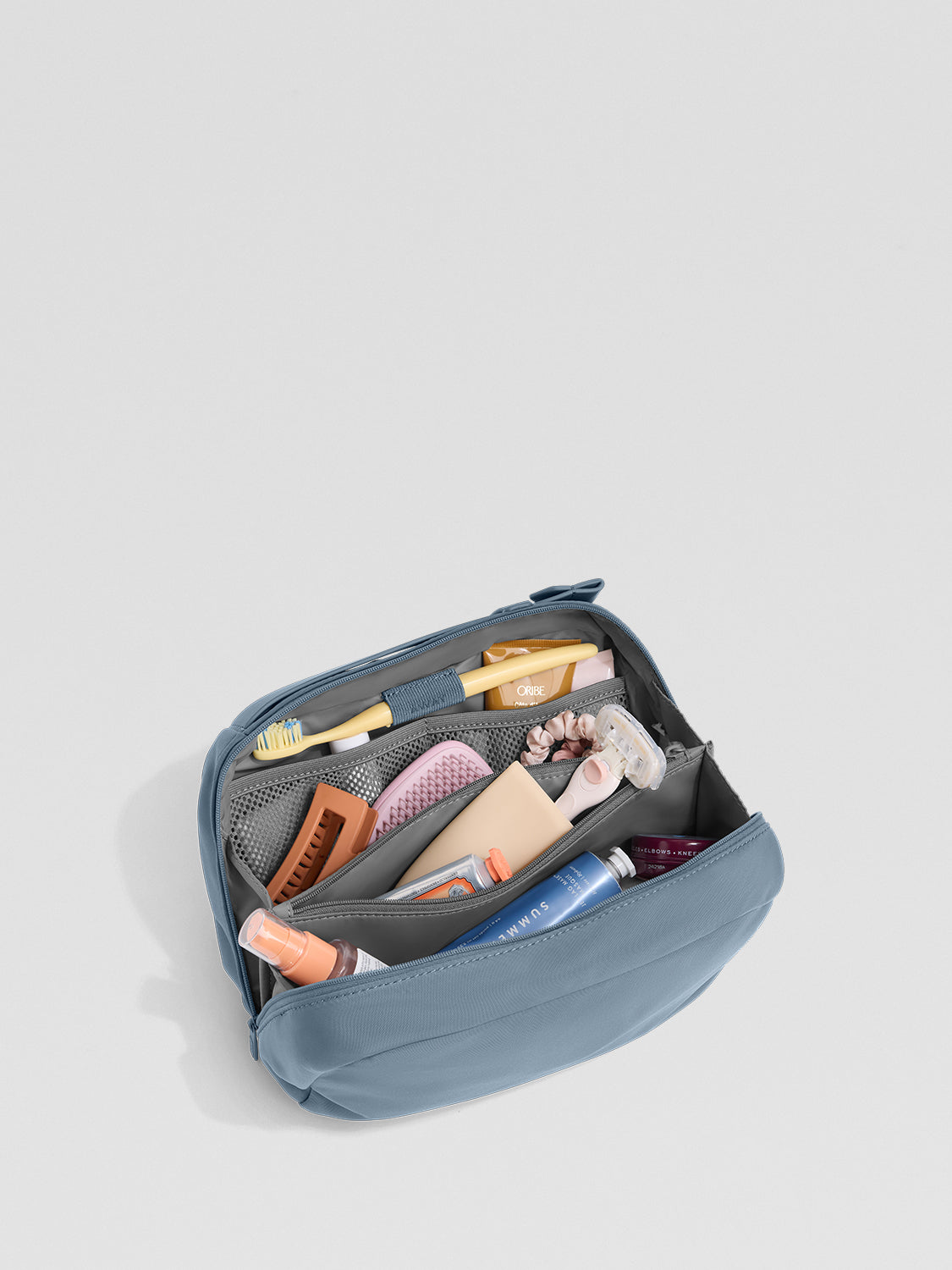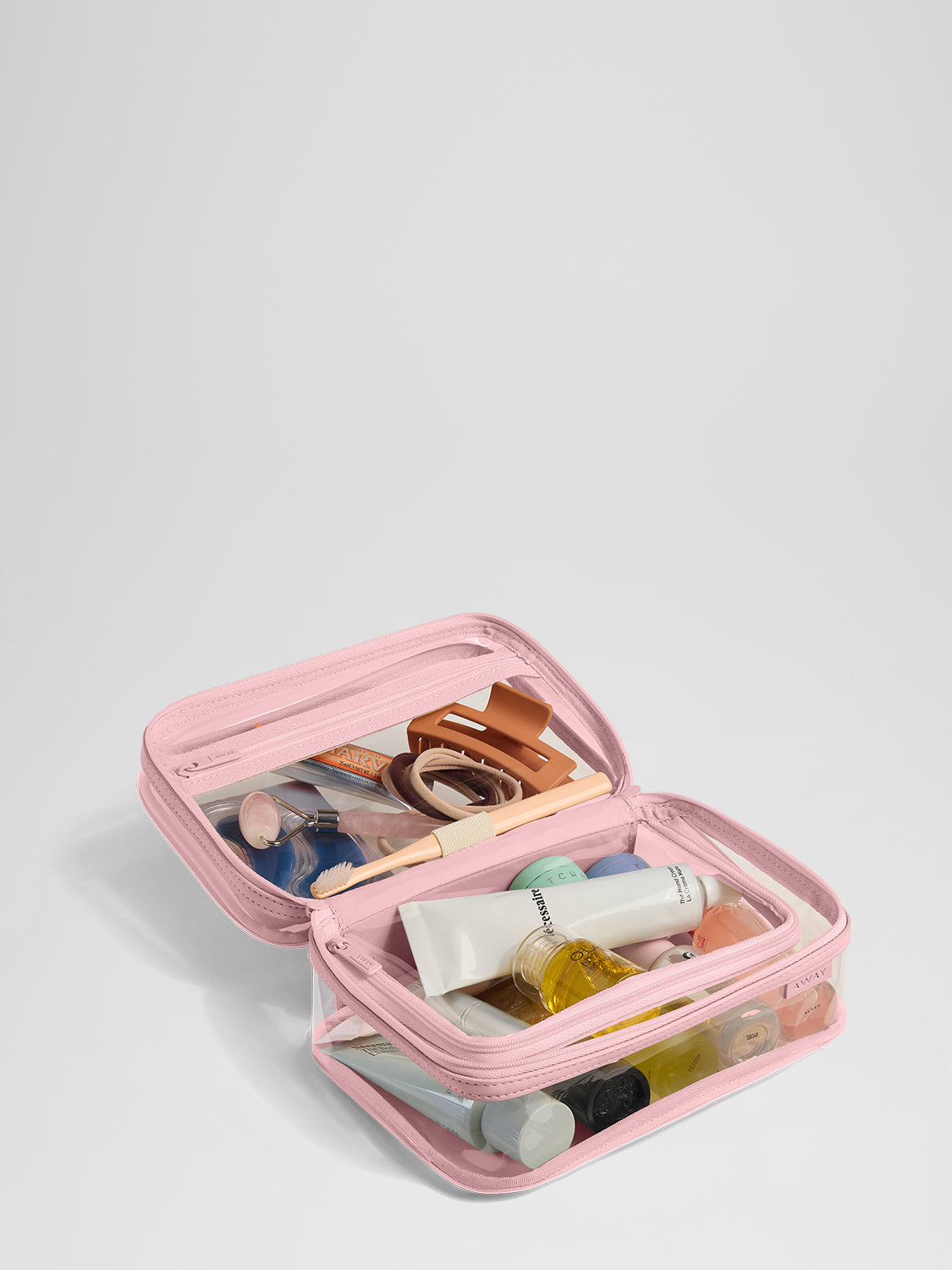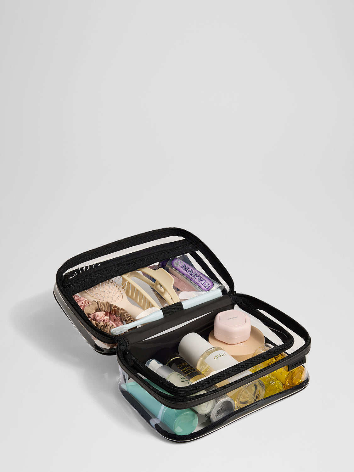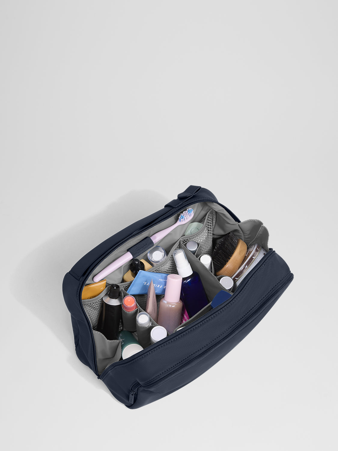 A toiletry bag is a small, usually compartmentalized pouch designed specifically to hold hygiene items like your toothbrush, shampoo, and skincare products while traveling.